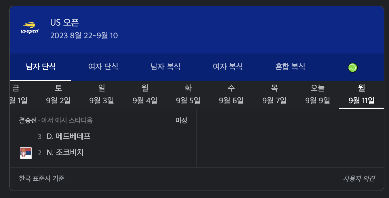 2023 US오픈 결승에는 세계 랭킹 1위를 이기고 올라온 메드베데프 그리고 세계랭킹 2위 조코비치와의 결승전이 있습니다.